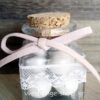 Η μπομπονιέρα περιέχει 3 κουφέτα σοκολάτα crispy ή 5 αμυδάλου της εταιρίας Χατζηγιαννάκη μέσα στην μπιζουτιέρα.