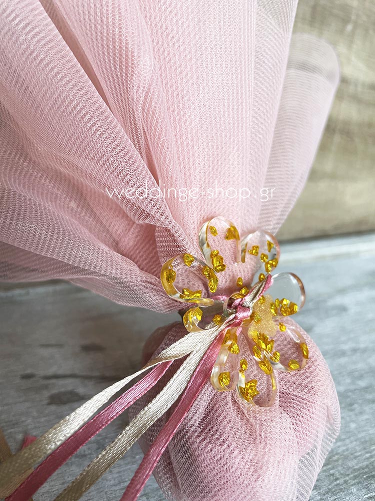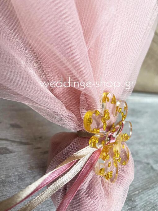 Μπομπονιέρα τούλινη με λουλούδι από υγρό γυαλί